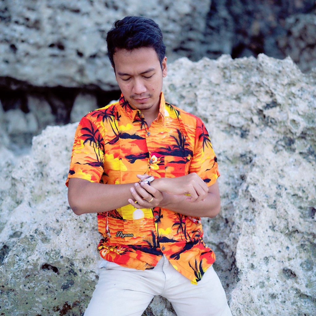 Kemeja surfing pria lengan pendek cowok baju motif print hem cowo kemeja pantai xxl.